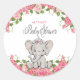 Sticker Rond Douce éléphant princesse fleurs roses Baby Shower