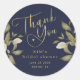 Trendy classe élégante sophistiquée bleu marine foncé merci autocollant pour une douche nuptiale de luxe vintage décorée avec un script en faux or et ivoire et feuillage botanique vert sauge. +++++++++++ Veuillez noter que la couleur arrière - plan peut être modifiée pour correspondre à votre jeu de couleurs mariage. Si cela vous convient, vous pouvez le modifier après avoir sélectionné l'option CUSTOMISER l'informatique. +++++++++++ Si vous avez besoin d'aide, envoyez un message au concepteur ou accédez au service GRATUIT de Zazzle Live Designer.