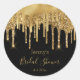 douche nuptiale design parties scintillant à goutte d'or noir mariage Classic Round Sticker, personnalisé