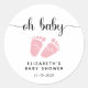 Un autocollant mignon pour votre bébé fille douches faveurs et la correspondance avec "oh bébé" dans un script élégant avec des swashes et une aquarelle rose de pieds bébé. Personnalisez avec votre nom et votre date de douche.