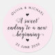 Un Sticker Mariage classique en Merci noir avec "Une fin douce à un nouveau commencement" dans une calligraphie de police moderne et rustique. Vous pouvez facilement le personnaliser avec vos noms et date mariage.