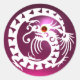 Sticker Rond DRAGON DE NAGE, blanc, améthyste rose, rubis rouge
