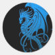 Sticker Rond Dragon tribal volant - bleu sur noir