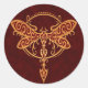 Cette conception de libellules tribales est décorée de tourbillons complexes et de motifs de points. Les lignes délicates sont peintes d'un jaune doré tandis que l'intérieur est d'un rouge foncé. Ce motif symétrique a un cercle mince derrière la libellule, avec de minuscules points le long du bord extérieur. L'arrière - plan de cet autocollant est fini avec une couleur rouge foncé créé un contraste agréable. Ce design stylisé est une représentation saisissante de cette merveilleuse petite créature volante.