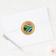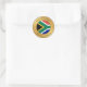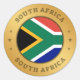 Le drapeau sud-africain est encastré dans une bague en faux or arrondie. Les mots "Afrique du Sud" se trouvent en haut et en bas du design, et ont un effet pressé. La paire de trois étoiles décoratives les unes en face des autres, est également conçue avec un effet pressé.