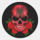 Ce design unique présente le drapeau de l'Albanie peint sur un crâne agressif. Les couleurs albanaises recouvrent tout le crâne avec de grandes fissures serpentant à travers l'os. Quatre roses rouges avec des feuilles verts apparaissent juste derrière le crâne sur un arrière - plan noir pur. Ce motif sombre est une façon unique de montrer son patriotisme.