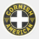 Design circulaire en noir, jaune et blanc avec le drapeau de la Cornouaille et les ensignes du Duc de Cornwall. Avec le texte Cornish American autour.