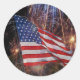 Sticker Rond Drapeau Américain Et Design Fireworks
