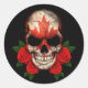 Ce dessin unique présente le drapeau du Canada peint sur un crâne agressif. Les couleurs canadiennes recouvrent tout le crâne avec de grandes fissures serpentant à travers l'os. Quatre roses rouges avec des feuilles verts apparaissent juste derrière le crâne sur un arrière - plan noir pur. Ce modèle sombre est une façon unique de montrer votre patriotisme.