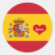 Sticker Rond Drapeau espagnol avec cœur rouge, j'aime l'Espagne