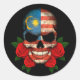 Sticker Rond Drapeau malaisien avec des roses rouges