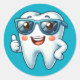 Des autocollants bleus amusants avec un pouce vers le haut et des lunettes de soleil pour les dents.