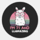 Sticker Rond Drôle Adorable Llama 71e Anniversaire Cadeau Pour