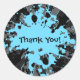 Belle fête d'anniversaire de paintball merci les stickers avec des éclaboussures de peinture bleu et noir sur un gris grincheux, noir, et bleu sunburst arrière - plan à motif.