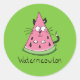 Sticker Rond Drôle Cartoon Chat Watermelon Enfants