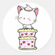 Sticker Rond Drôle chat blanc sautant d'un gâteau