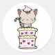 Sticker Rond Drôle chat Tabby sautant d'un gâteau