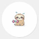 Sticker Rond Drôle Chibi Sloth Workout Cute Kawaii Gym Cartoon