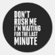 Sticker Rond Drôle Dernière minute Procrastination Ne me presse