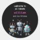 Sticker Rond drôle d'invitation d'anniversaire de robot