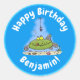 Sticker Rond Drôle gras affamé poisson vert dessin de pêche