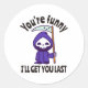 Funny and scary Halloween design with a funny Grim Reaper skeleton holding a scythe and saying "You're funny, I'll get you last". A parfaite match pour Halloween celebration as well as for daily use.