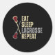 Sticker Rond Drôle Manger Lacrosse Dormir Répéter Lacrosse Joue