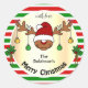 Sticker Rond Drôle Noël Cerf rouge et vert rayé personnalisé