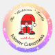 Sticker Rond Drôle Père Noël Cartoon et Parties scintillant col