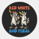 Sticker Rond Drôle Raccoon 4 juillet Us Drapeau Patriotique Rou