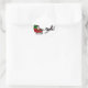 Sticker Rond Drôle Sleigh de Noël avec Husky Dog Pulling