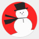 Sticker Rond Drôle Snowman de Noël avec chapeau supérieur