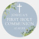 Cet élégant autocollant de communion sainte bleu poussiéreux à l'eucalyptus vert peut être personnalisé avec vos informations en typographie chic. Conçu par Thisisnotme©