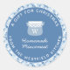 Étiquette-cadeau alimentaire maison de la cuisine (nom de famille)... Sticker rond Dusty Blue Classic ou Étiquette Jar Lid... Un motif spécial à l'aquarelle bleu pâle et bleu pastel borde le texte de votre produit alimentaire fait maison sur ces étiquettes d'autocollants ronds pour donner vos confitures, confitures et amulettes faites maison. Au centre du étiquette se trouve un graphique en pot de confiture bleu pastel avec un monogramme superposé initial au-dessus du texte de l'exemple de recette "Mincemeat maison". Exemple de texte blanc cassé : "Un cadeau pour Noël" et "From the Westfield Kitchen" tout autour de l'exemple de nom de produit et de pot de confiture. Vous pouvez modifier tout le texte en fonction de vos propres besoins sur le modèle de personnalisation pratique.