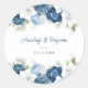 Sticker Rond Dusty Blue Floral Greenery Script Mariage