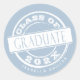 Cet autocollant bleu poudré à poutres blanches présente une "classe" de mots blancs à l'intérieur d'un cercle qui ressemble à un timbre. Entrez simplement votre nom et votre année de graduation. Utilisez-le comme une fête de remise de diplômes pour favoriser l'autocollant de décoration ou le sceau d'enveloppe.