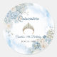 Sticker Rond Dusty Blue Ivory Fleurs Roses Quinceanera Annivers