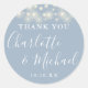 Dusty bleu mariage faveur merci classique collant rond avec de jolies lumières à cordes et des noms de style signature. Personnalisez avec vos détails de remerciement spéciaux dans la typographie blanche moderne. Conçu par Thisisnotme©