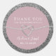 Moderne, élégant, luxueux, chic, poussiéreux rose et mariage en argent parties scintillant merci sticker pour les faveurs, avec coeur de corde romantique et script de calligraphie simple.