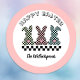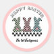 Sticker Rond Easter Bunny Checkerboard Pink Green Teal Monogram