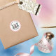 This playful Easter bunny round sticker has a cute and playful checkerboard design with the rear profile of 3 cute bunnies and their cotton tails, decorated in a checkerboard pattern. Each bunny is a different color alternating with black squares: mint green, pink, and a soft blue-teal color. A pink border surrounds the cute rabbits. The text Happy Easter appears above the 3 bunnies in a playful font, with a strip of classic black and white squares, with your family's name or message in a pretty script font below. Make sure to type the name in the Personalize box.