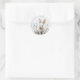 Personalized watercolor Easter bunny floral round sticker featuring an adorable white rabbit surrounded by delicate blue wildflowers and soft botanical accents, creating a charming pastel spring design perfect for seasonal celebrations. This sweet cottagecore inspired bunny sticker blends gentle watercolor textures, soft neutral tones, and airy floral details in a balanced circular layout with customizable text along the top, making it a thoughtful personalized touch for Easter gifts and decorations. The whimsical bunny illustration and calming blue floral palette capture the warmth and beauty of spring while creating a cute, joyful aesthetic that children and families love. Ideal for personalized kids school class gifts, Easter basket surprises, classroom party favors, gift bag seals, envelopes, and spring craft projects, this adorable bunny floral sticker adds a memorable and festive detail to any Easter celebration.