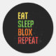 Sticker Rond Eat Sleep Blox Repeat, Blox Gaming, Funny Blox Cos