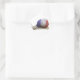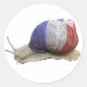 Photo couleur d'un escargot patriotique avec une numériquement coquille tricolore peinte en rouge, blanc et bleu. Ces escargots français sont la variété comestible, aussi connue sous le nom d'escargots de Bourgogne ou de Romain, mais ne viennent pas normalement dans ces couleurs.