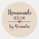 sticker moderne "fait maison avec amour" avec une police noire sur un arrière - plan beige agrémenté d'un coeur rouge mignon. Customiser du texte.