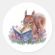 Sticker Rond Écureuil Lit Un Livre, Niché Dans Des Fleurs