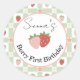 Sticker Rond Editable Strawberry Gingham 1st Birthday Favor