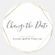 Mariage de l'effet d'or géométrique changer l'autocollant de date. Mariage Modifier l'autocollant Date. sceau de l'enveloppe mariage. Géométrie or moderne Changez l'autocollant de date pour terminer vos invitations et envoyer à vos invités. Ce sticker moderne Changer la date comporte vos noms et date mariage avec une bordure géométrique d'effet or moderne et "Changer la date" écrit dans un script élégant de couleur or assorti. Vous pouvez modifier les couleurs du texte en fonction de votre style. Veuillez noter que l'effet or est imprimé.
