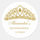 Sticker Rond Effet parties scintillant or tiara Quinceanera