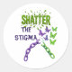 Passez libre et parlez avec cet autocollant audacieux "Shatter the Stigma". Doté d'un lettrage vert explosif pour "SHATTER", d'un texte violet frappant pour "THE STIGMA" et d'une chaîne brisée se transformant en papillons, ce design saisit l'essence de la transformation et de l'autonomisation.
